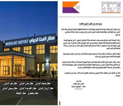 ملتقى الرقي والتقدم يدين منع جماعة الحوثي هبوط طائرة مدنيه في مطار المخا